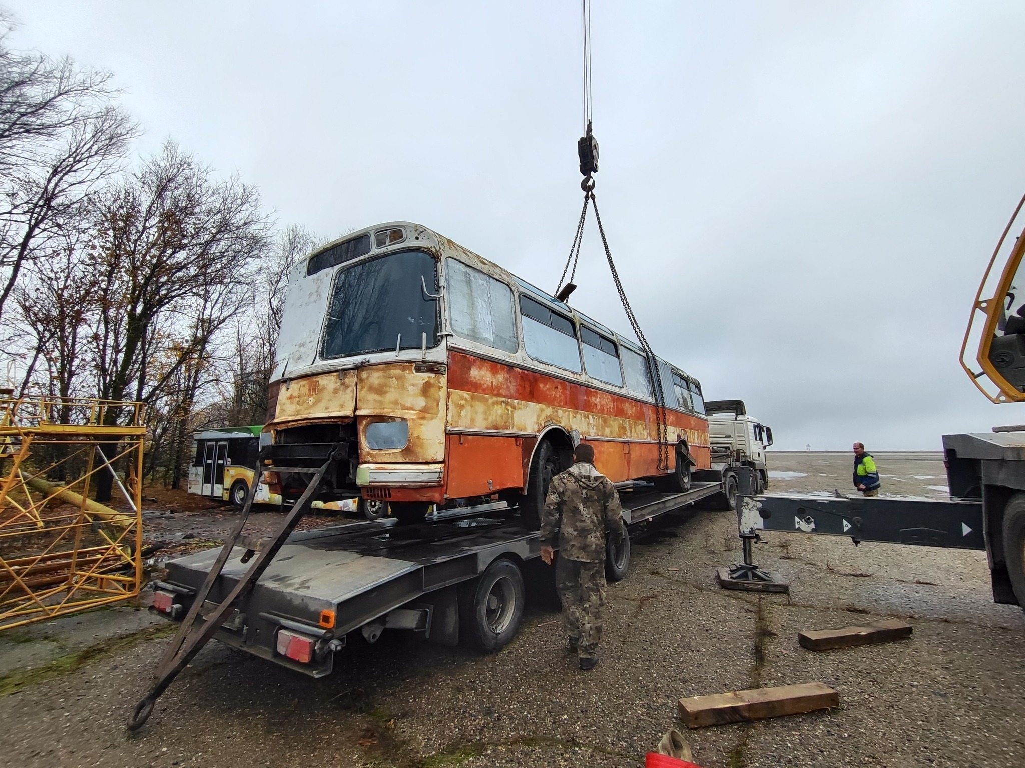Dostupné zdroje naznačujú, že tento autobus bol pôvodne používaný na moskovskom letisku Šeremetievo na prepravu cestujúcich do a z lietadiel. V roku 1973 bolo niekoľko jeho častí prevezených na letisko Stavropol. Tento konkrétny autobus po vyradení z prevádzky slúžil ako sklad materiálu. Našli ste ho v Stavropole, alebo už bol v inom meste?